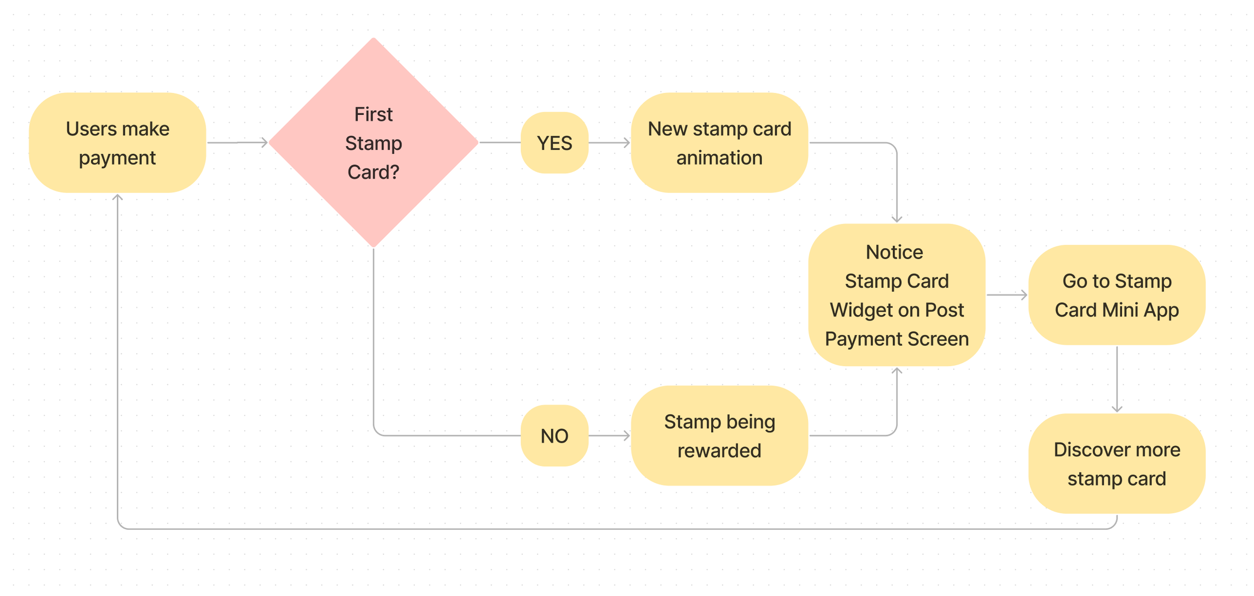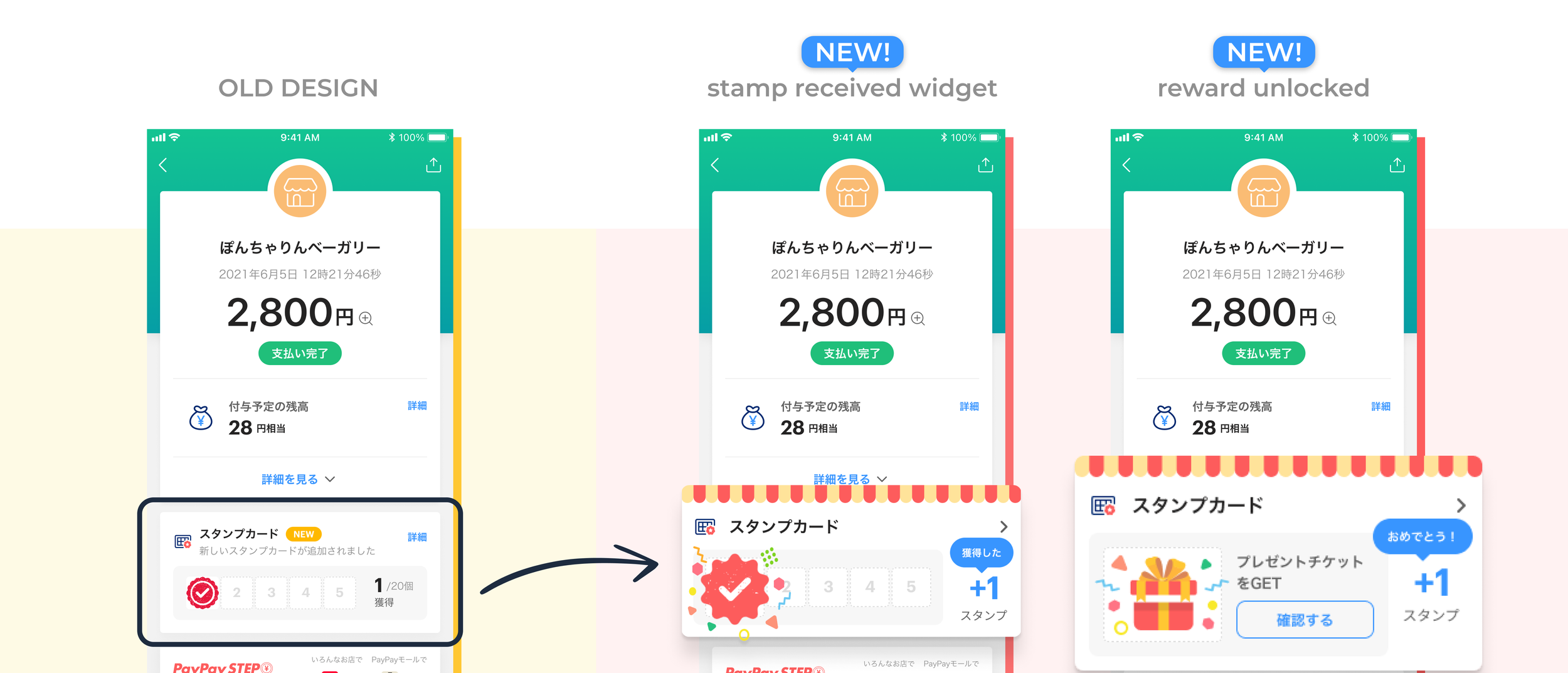 PayPay StampCard is different from other digital stamp card services, which require users to scan the QR code to claim the stamp however, for the PayPay Stamp Card once users made a payment using PayPay, a stamp will automatically be accumulated. Users also can quickly see the process from the Stamp Card's Widget on Post Payment Screen.